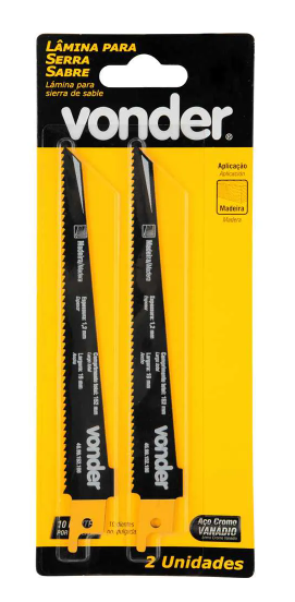 Aplicações e dicas de uso: Indicada para reposição nas Serras Sabre VONDER, modelos: ISSV 1822, ISSV 1835 e SSV 1050. Comprimento total da lâmina para serra sabre: 152 mm