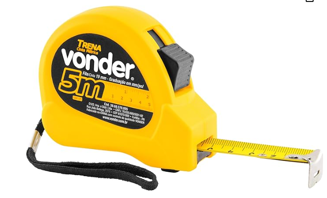 Esta trena é ideal para diversas medições e não inclui alça de nylon. Ela vem com um estojo anatômico feito de ABS resistente, e a fita é de aço com graduação em milímetros e polegadas. A fita possui acabamento brilhante e pintura contínua, que facilita a leitura e melhora a precisão. O modelo conta com uma trava para a fita, o que ajuda na medição, e uma presilha para cinto que facilita o transporte durante o uso. Além disso, o gancho ajustável na ponta da fita permite medições internas e externas com maior precisão.